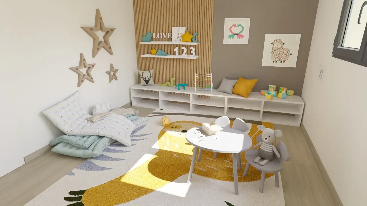 - Espace de vie : Un vaste séjour-cuisine ouvert, inondé de lumière grâce aux grandes baies vitrées.