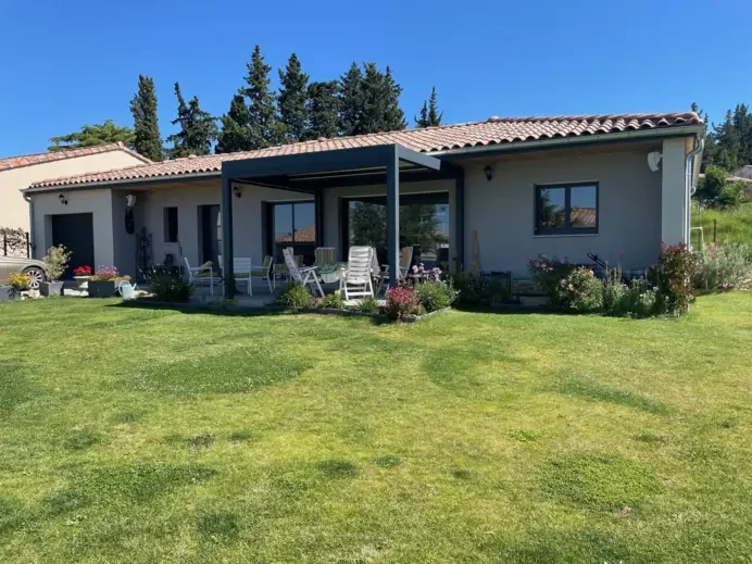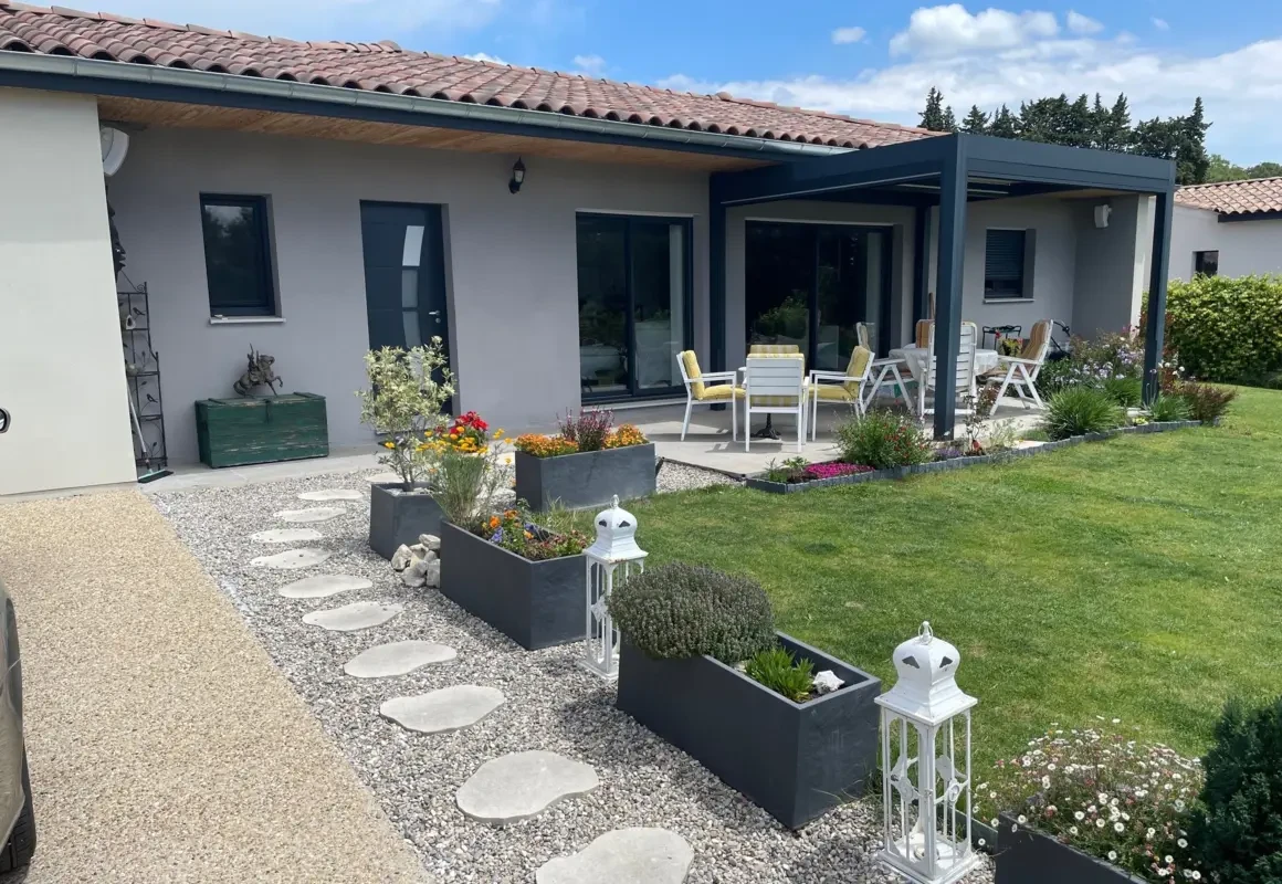 La maison : Inspirée des tendances architecturales actuelles, cette maison allie la solidité de la construction traditionnelle à une esthétique contemporaine soignée.