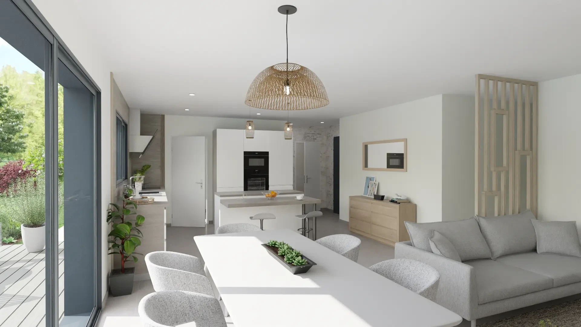 Une maison pensée pour la famille : Notre inspiration Oréane d'une surface habitable de 135 m², aux lignes épurées et à la toiture 4 pans allie charme méridional et modernité. L'agencement intérieur privilégie la fluidité et la lumière :