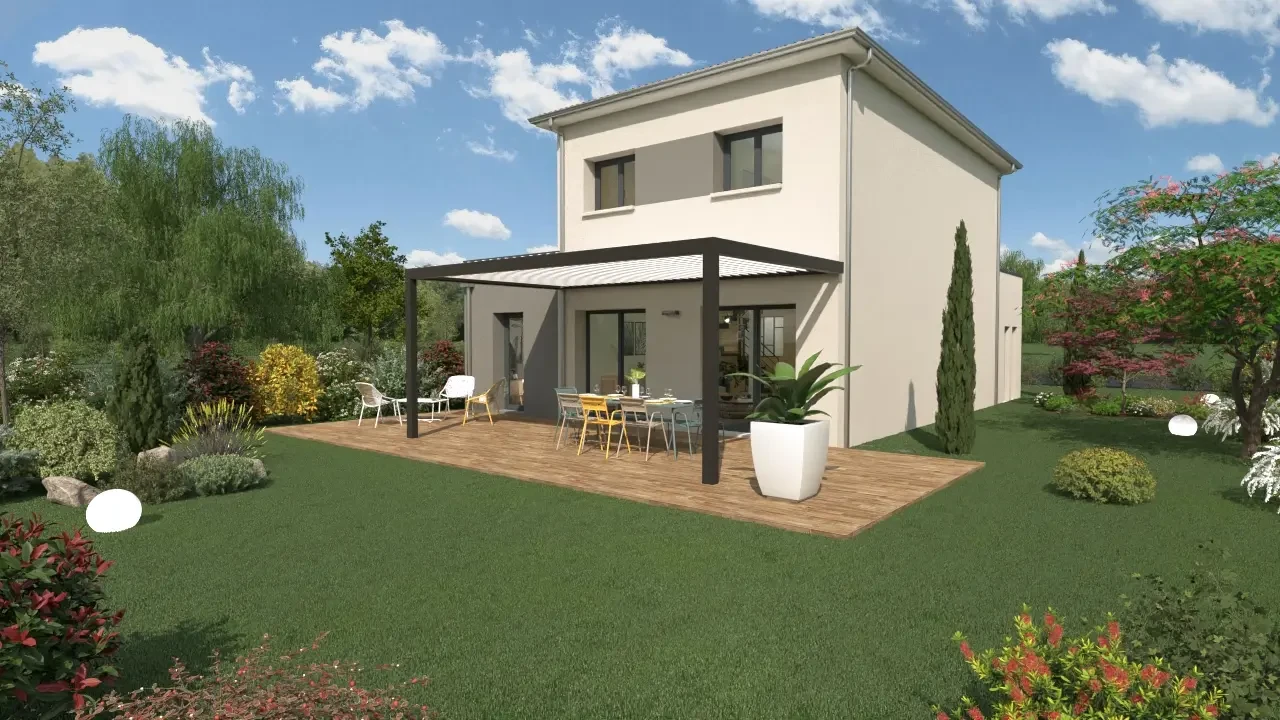 Nous vous proposons cette maison de 111 m² sur 2 niveaux séduit par ses lignes contemporaines et sa toiture 4 pans, qui lui confèrent un style unique et élégant. L'avancée du garage accentue son allure contemporaine et donne du caractère à la façade.