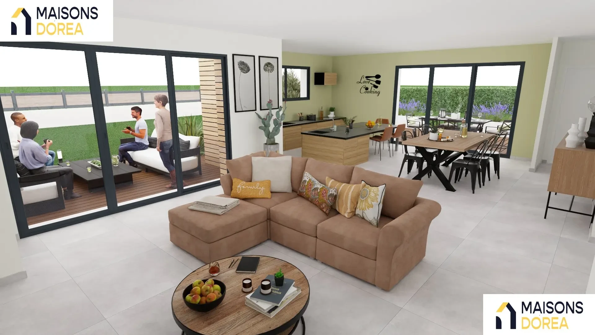 Vous rêvez d’une maison moderne et fonctionnelle ? Découvrez cette superbe maison de plain-pied de la marque DOREA, à construire. Avec ses 130 m² habitables, cette maison offre des espaces spacieux et une architecture contemporaine qui allie confort et performance énergétique.