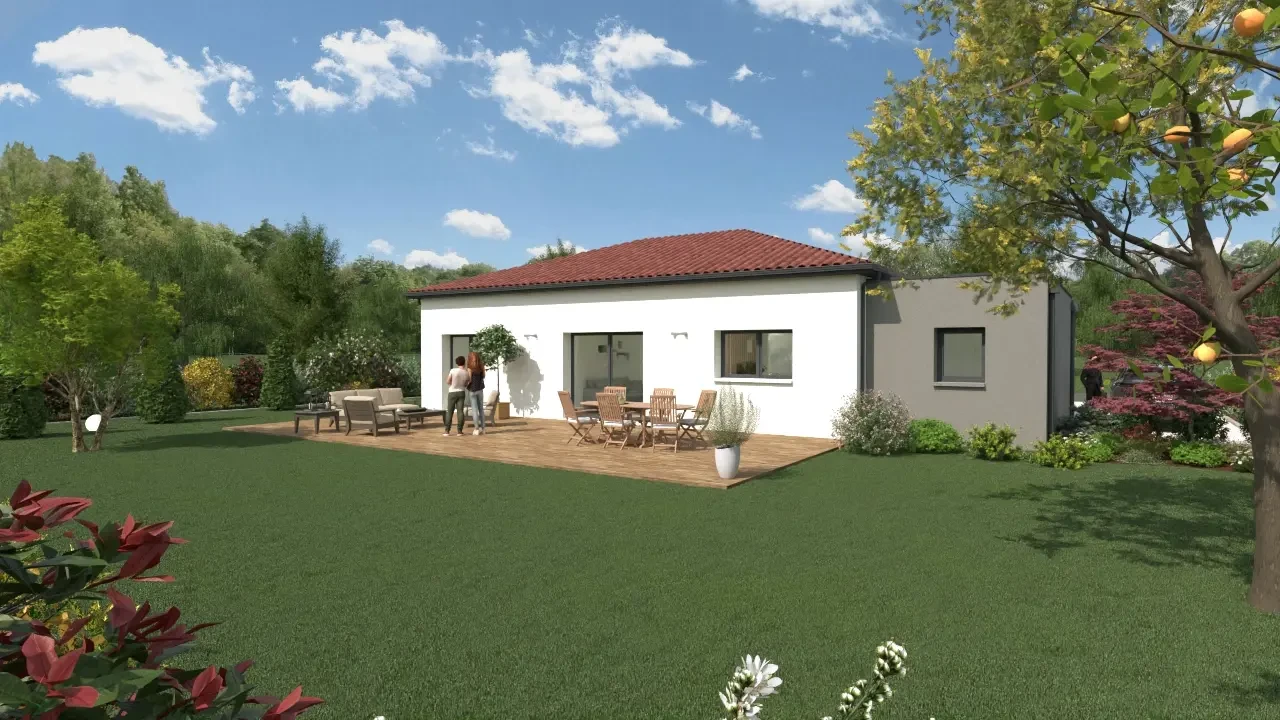 Cette maison de plain-pied de 106 m² séduit par son élégante toiture à quatre pans, alliance parfaite entre charme intemporel et confort contemporain. Conçue pour accueillir toute la famille, elle offre une organisation fluide et des volumes généreux, pensés pour simplifier le quotidien.