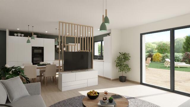 Baignée de lumière grâce à ses grandes baies vitrées, elle offre une pièce de vie spacieuse de 52 m², ouverte sur une cuisine pratique avec cellier. Chaque espace a été pensé pour faciliter votre quotidien, dans une ambiance lumineuse et chaleureuse. Quatre chambres sont modulables pour toute la famille. Les quatre chambres, intelligemment agencées, permettent à chacun de trouver son intimité. L’une d’elles peut être transformée en bureau, salle de sport ou espace dédié à vos passions. La salle de bain et les WC séparés complètent cet agencement idéal pour une vie familiale harmonieuse et évolutive.