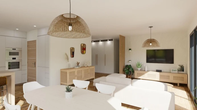Réalisée sous Contrat de Construction de Maison Individuelle (CCMI), cette maison bénéficie de la norme RE2020, garantissant une maîtrise des consommations énergétiques.